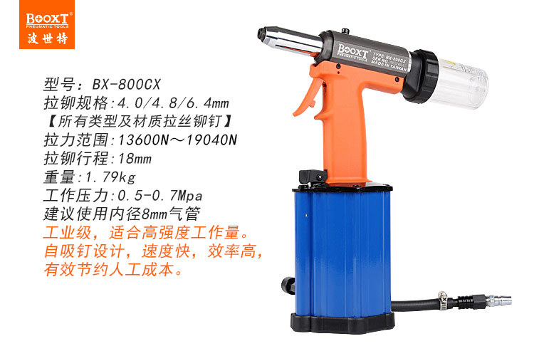 東莞市強(qiáng)勁五金工具有限公司提供臺灣BOOXT波世特品牌氣動工具,氣動拉釘槍BX-800CX廠家直銷,首件享特價(jià)。咨詢熱線:4008301980