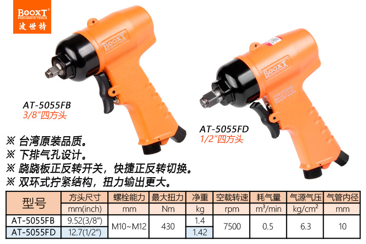 東莞市強勁五金工具有限公司提供臺灣BOOXT波世特品牌氣動工具,迷小風炮AT-5055FB廠家直銷,首件享特價。咨詢熱線:4008301980