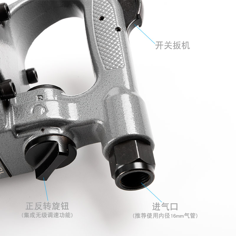 • 產(chǎn)品參數(shù): 螺栓能力:36mm; 方頭尺寸:1" (25.4mm) 峰值扭力:2500Nm; 空載轉(zhuǎn)速:4300rpm; 重 量:8.4kg; 總 長:350mm 耗 氣 量:1.25m3/min 使用工作氣壓:0.65Mpa; 推薦使用內(nèi)徑16mm氣管; 平時(shí)使用應(yīng)多加氣動(dòng)油保養(yǎng)。 【經(jīng)濟(jì)型/無銷結(jié)構(gòu)】