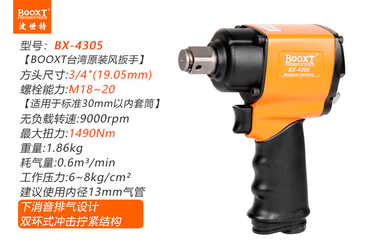 東莞市強勁五金工具有限公司提供臺灣BOOXT波世特品牌氣動工具,中型風炮BX-4305廠家直銷,首件享特價。咨詢熱線:4008301980