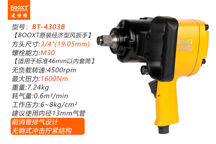 東莞市強勁五金工具有限公司提供臺灣BOOXT波世特品牌氣動工具,中型氣動沖擊扳手BT-4303B廠家直銷,首件享特價。咨詢熱線:4008301980