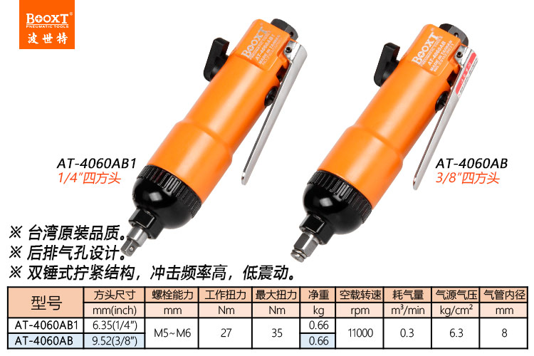 東莞市強勁五金工具有限公司提供臺灣BOOXT波世特品牌氣動工具,直式氣動扳手AT-4060AB廠家直銷,首件享特價。咨詢熱線:4008301980