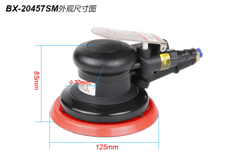 • 產(chǎn)品參數(shù): 底盤尺寸:125mm (5寸) 空載轉(zhuǎn)速:12000rpm 偏擺直徑:5mm 工具尺寸:85*125mm 重 量:0.74kg 耗 氣 量:0.48m3/min 【專業(yè)型】
