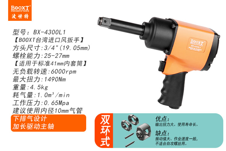 東莞市強(qiáng)勁五金工具有限公司提供臺(tái)灣BOOXT波世特品牌氣動(dòng)工具,加長軸小風(fēng)炮BX-4300L1廠家直銷,首件享特價(jià)。咨詢熱線:4008301980
