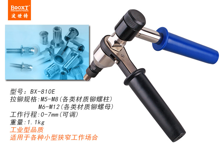 東莞市強(qiáng)勁五金工具有限公司提供臺(tái)灣BOOXT波世特品牌氣動(dòng)工具,手動(dòng)棘輪拉鉚螺母槍BX-810E廠家直銷(xiāo),首件享特價(jià)。咨詢(xún)熱線(xiàn):4008301980