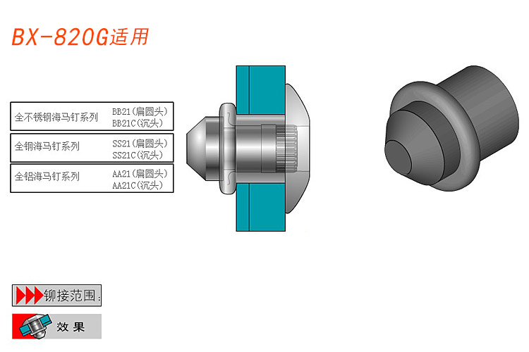 4.品種齊全,適合不同規(guī)格,不同強(qiáng)度的鉚釘。