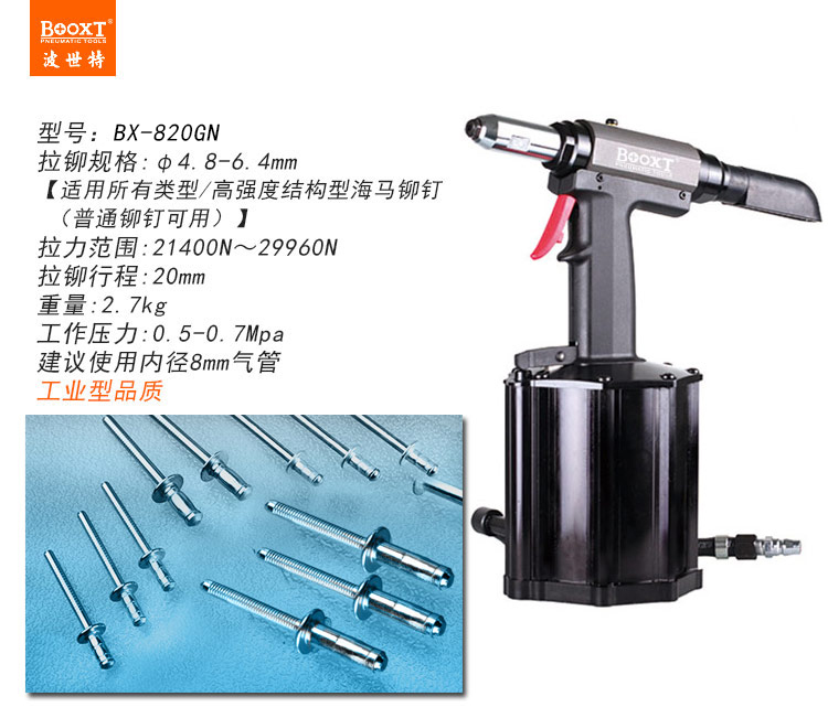 東莞市強(qiáng)勁五金工具有限公司提供臺灣BOOXT波世特品牌氣動工具,氣動海馬鉚釘槍BX-820GN廠家直銷,首件享特價。咨詢熱線:4008301980