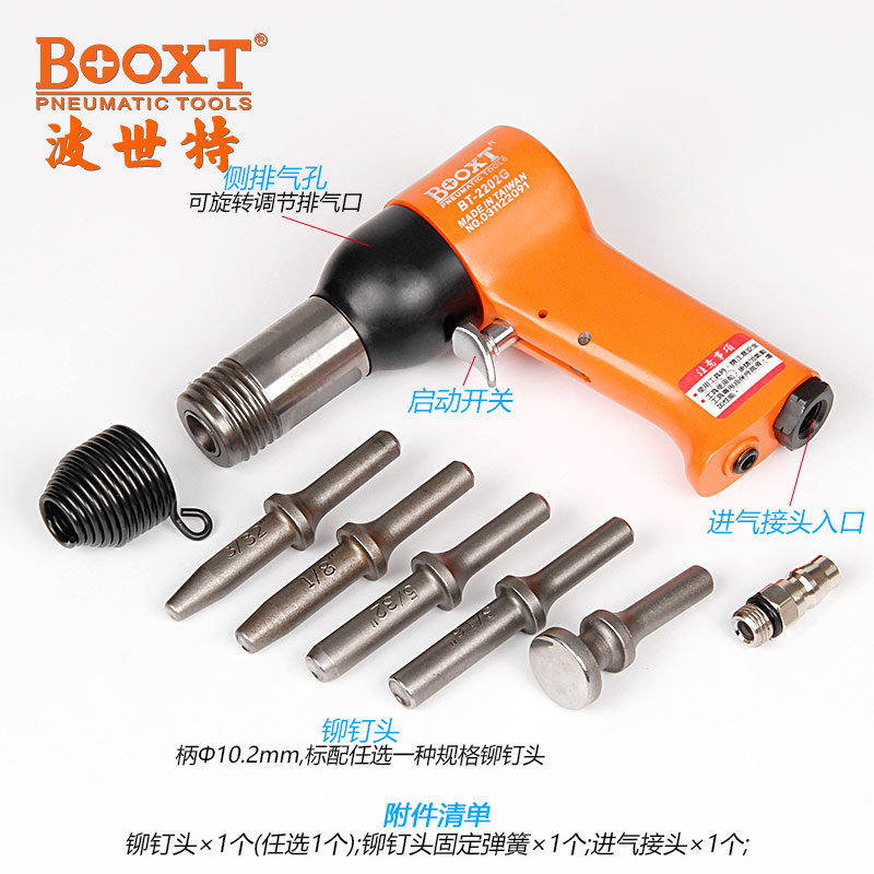 東莞市強(qiáng)勁五金工具有限公司提供臺(tái)灣BOOXT波世特品牌氣動(dòng)工具,風(fēng)動(dòng)鉚釘錘BT-2202G廠家直銷,首件享特價(jià)。咨詢熱線:4008301980