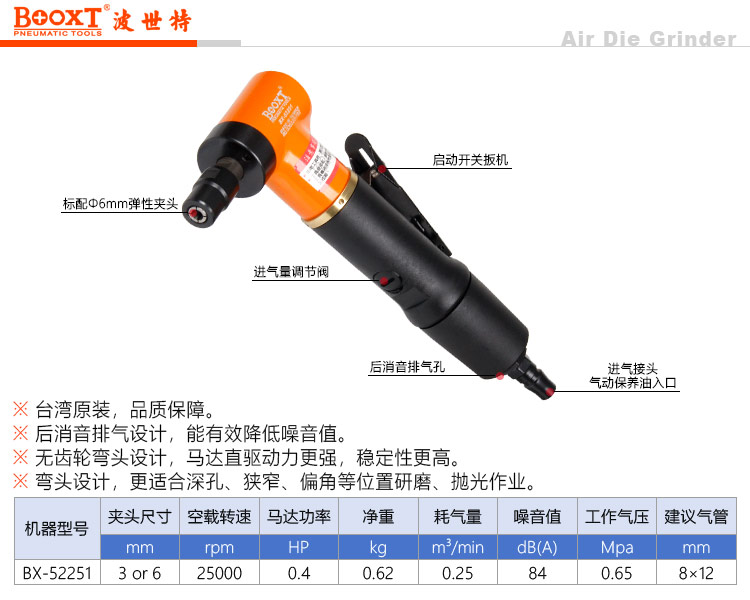 東莞市強勁五金工具有限公司提供臺灣BOOXT波世特品牌氣動工具,風磨機BX-52251廠家直銷,首件享特價。咨詢熱線:4008301980