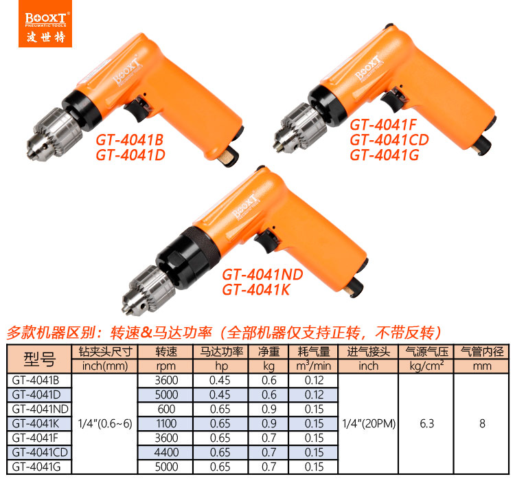 東莞市強勁五金工具有限公司提供臺灣BOOXT波世特品牌氣動工具,4400轉(zhuǎn)氣動鉆GT-4041CD廠家直銷,首件享特價。咨詢熱線:4008301980