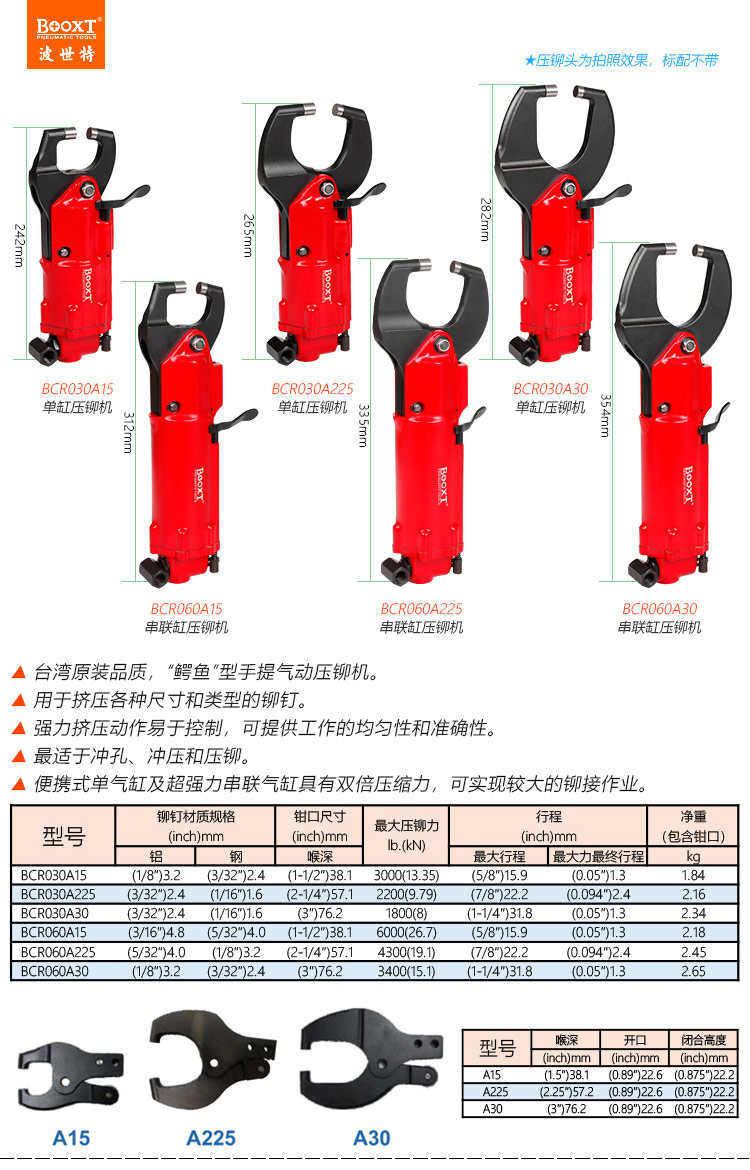 東莞市強(qiáng)勁五金工具有限公司提供臺灣BOOXT波世特品牌氣動工具,雙聯(lián)缸氣動壓鉚槍BCR060A225廠家直銷,首件享特價。咨詢熱線:4008301980
