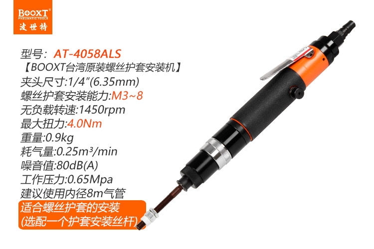 東莞市強勁五金工具有限公司提供臺灣BOOXT波世特品牌氣動工具,氣動不銹鋼螺絲護套安裝機AT-4085ALS廠家直銷,首件享特價。咨詢熱線:4008301980