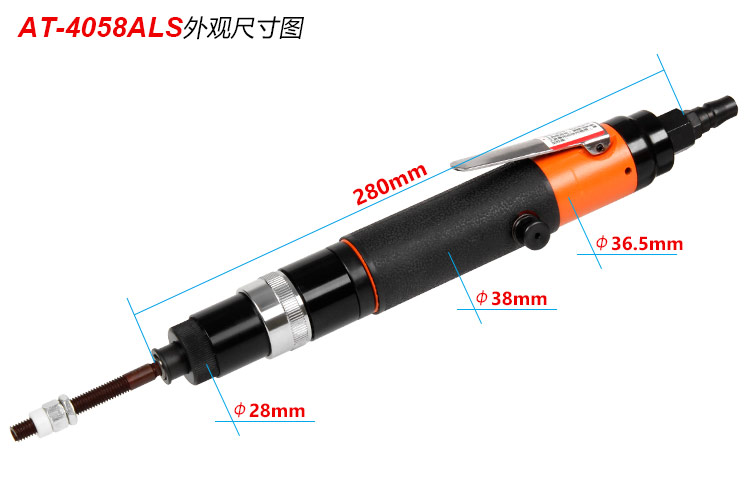 • 產品參數(shù): 螺絲規(guī)格:M4-8 夾頭尺寸:1/4" 空載轉速:1450rpm 峰值扭力:4Nm 全 長:280mm 重 量:0.9kg 耗 氣 量:0.25m3/min 噪 音 值:80db(A) 【專業(yè)型】