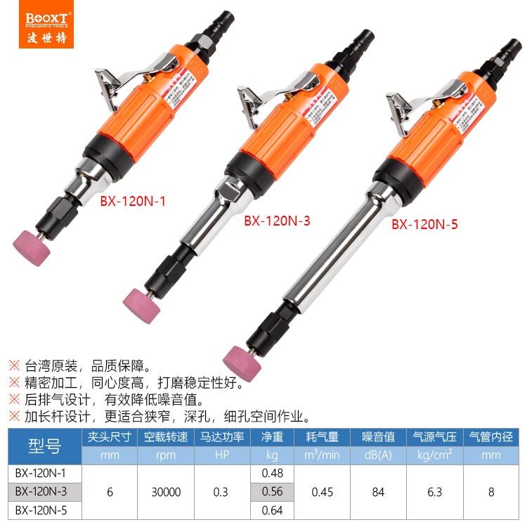 東莞市強(qiáng)勁五金工具有限公司提供臺(tái)灣BOOXT波世特品牌氣動(dòng)工具,加長氣動(dòng)直磨機(jī)BX-120N-3廠家直銷,首件享特價(jià)。咨詢熱線:4008301980