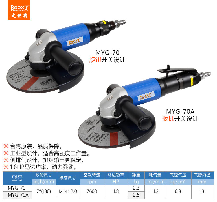東莞市強勁五金工具有限公司提供臺灣BOOXT波世特品牌氣動工具,7寸風(fēng)動角磨機MYG-70廠家直銷,首件享特價。咨詢熱線:4008301980