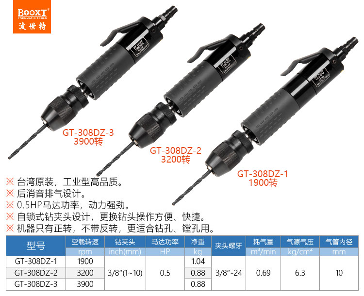 東莞市強勁五金工具有限公司提供臺灣BOOXT波世特品牌氣動工具,直型氣鉆GT-308DZ-3廠家直銷,首件享特價。咨詢熱線:4008301980