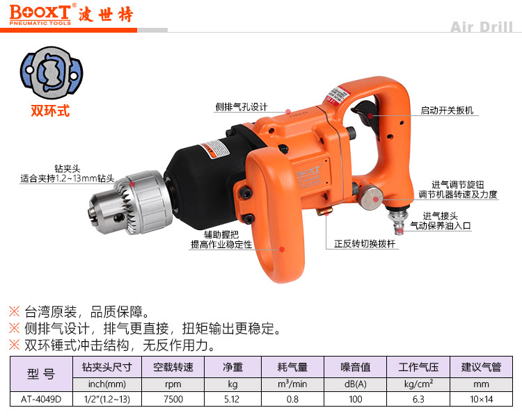 東莞市強(qiáng)勁五金工具有限公司提供臺(tái)灣BOOXT波世特品牌氣動(dòng)工具,沖擊式氣動(dòng)鉆AT-4049D廠家直銷,首件享特價(jià)。咨詢熱線:4008301980