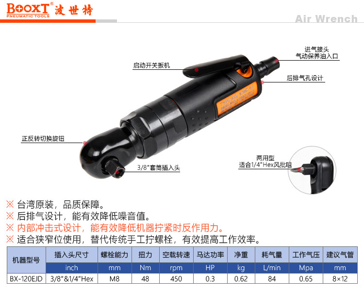 東莞市強(qiáng)勁五金工具有限公司提供臺灣BOOXT波世特品牌氣動工具,兩用氣動棘輪扳手BX-120EJD廠家直銷,首件享特價。咨詢熱線:4008301980