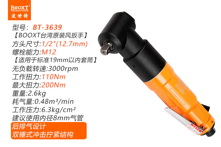 東莞市強(qiáng)勁五金工具有限公司提供臺灣BOOXT波世特品牌氣動工具,彎頭氣動沖擊扳手BT-3639廠家直銷,首件享特價(jià)。咨詢熱線:4008301980